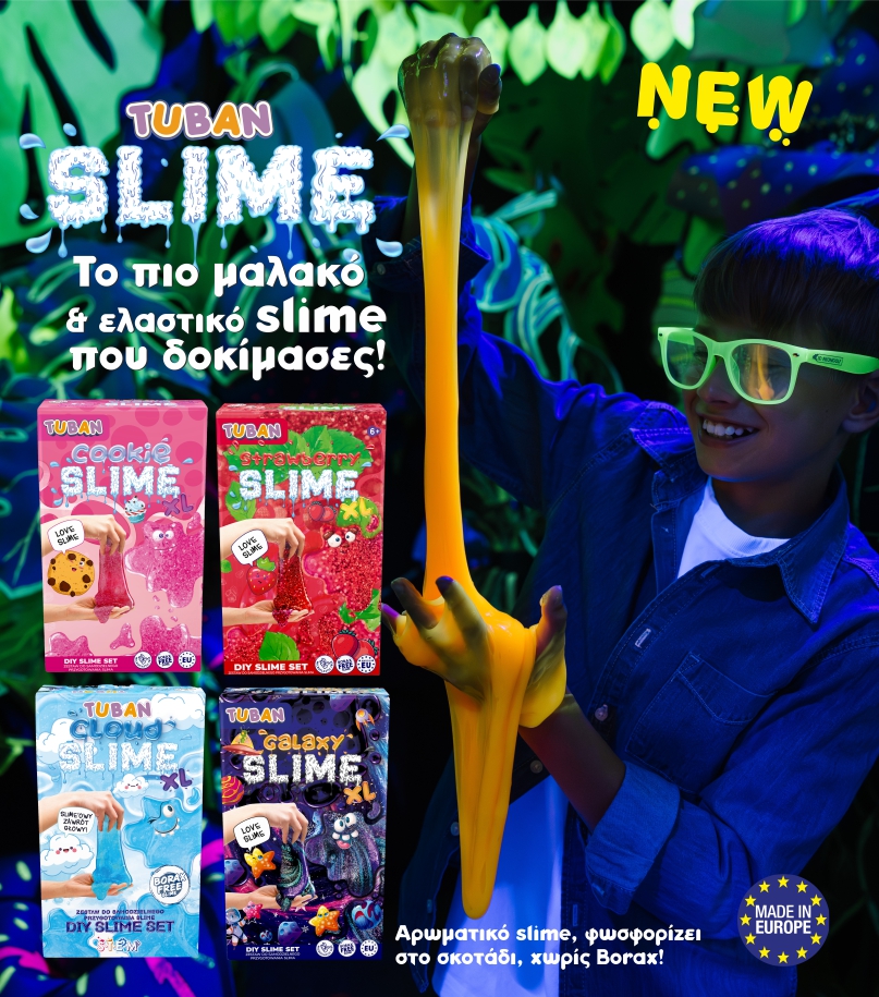 Το ΝΕΟ STAND “Let’s Slime” περιέχει 34 κωδικούς TUBAN slimes, συνολικά 168 τεμάχια. Διατίθεται αποκλειστικά με το συγκεκριμένο mix κωδικών. Σετ - Κατασκευή SLIME - Μπισκότο 5 Σετ - Κατασκευή SLIME - Φράουλα 4 Σετ - Κατασκευή SLIME - Καρπούζι 4 Σετ - Κατασκευή SLIME - Σύννεφο 4 Σετ - Κατασκευή SLIME - Glow in the dark 5 Σετ - Κατασκευή SLIME - Μπισκότο XL 2 Σετ - Κατασκευή SLIME - Καρπούζι XL 2 Σετ - κατασκευή SLIME - Glow in the dark XL 2 Σετ - Κατασκευή TUBAN SLIME & ΑΜΜΟΣ DYNAMIC…