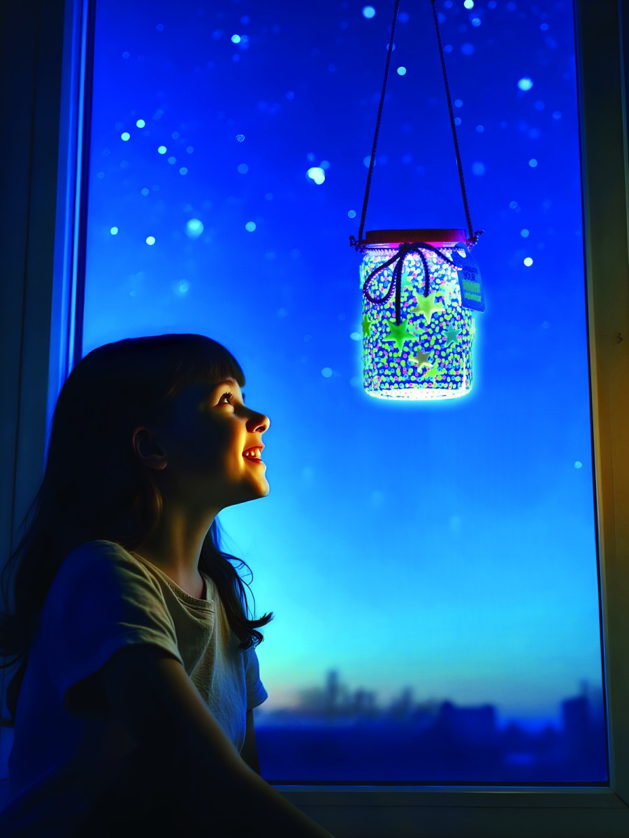 Ζωγράφισε το βάζο με το ειδικό εργαλείο για κουκκίδες. Κόλλησε μικρά και μεγάλα, λαμπερά αστέρια για να το διακοσμήσεις και γράψε ένα μήνυμα στην ετικέτα. Τοποθέτησε το καπάκι LED αφού αφαιρέσεις το προστατευτικό φύλλο και πάτησε το κουμπί. Απόλαυσε τα όμορφα μοτίβα γαλαξία που προβάλουν μέσα από το βάζο!