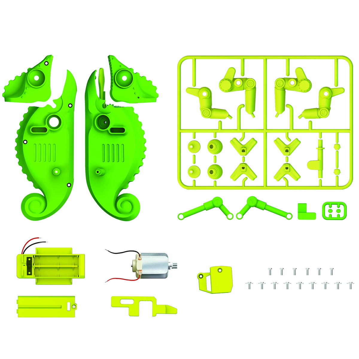 Φτιάξε το δικό σου Ρομπότ Χαμαιλέοντα και δες το να ζωντανεύει μπροστά στα μάτια σου! Με κάθε κίνηση, θα παρακολουθείς τη γλώσσα του να ξεδιπλώνεται, τα μάτια του να περιστρέφονται και τα πόδια του να κινούνται όπως ενός αληθινού χαμαιλέοντα. Ένα διασκεδαστικό και εκπαιδευτικό παιχνίδι που εξάπτει τη φαντασία και καλλιεργεί τις δεξιότητες μηχανικής των παιδιών.