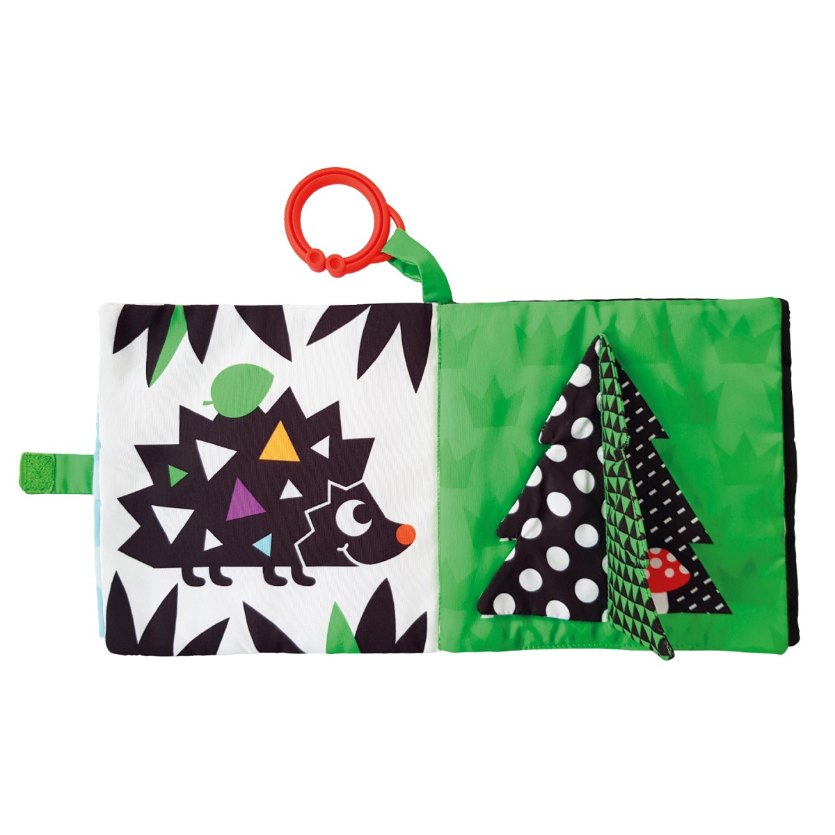 Αυτό το παιχνίδι υψηλής αντίθεσης είναι ιδανικό για τη διασκέδαση και την ανάπτυξη των νεογέννητων! Το διαδραστικό υφασμάτινο βιβλίο δραστηριοτήτων περιλαμβάνει σελίδες που μπορούν να πιαστούν, να ξεφυλλιστούν και να ανακαλυφθούν, με κρυμμένες εκπλήξεις, ένα «θροΐζον» πτερύγιο (crinkle flap) που κάνει ήχο, και έναν ασφαλή καθρέφτη που ενισχύει την ανακάλυψη του εαυτού τους. Χάρη στον κρίκο ανάρτησης, το παιχνίδι μπορεί να τοποθετηθεί εύκολα σε κούνια ή καρότσι για ατελείωτη διασκέδαση όπου κι αν βρίσκεστε!