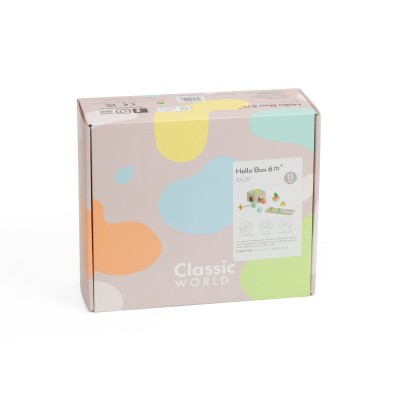 Το Hello Box είναι ένα σετ δώρου κατάλληλο για μωρά άνω των 6 μηνών, το οποίο αξιοποιεί την αστείρευτη περιέργειά τους για τον κόσμο γύρω τους. Μέσα από το παιχνίδι, τα μωρά ενισχύουν την οπτική εξερεύνηση και αναπτύσσουν τις λεπτές κινητικές τους δεξιότητες. Ιδανικό για τα πρώτα στάδια της ανάπτυξης, προσφέρει ασφαλείς και διασκεδαστικές δραστηριότητες που διεγείρουν τις αισθήσεις και ενθαρρύνουν την ανακάλυψη