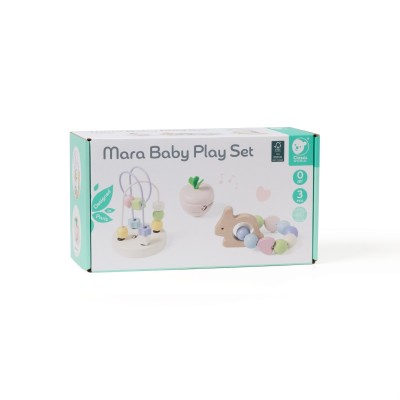 Αυτό το υπέροχο ξύλινο σετ παιχνιδιού είναι ειδικά σχεδιασμένο για τα πρώτα στάδια ανάπτυξης του μωρού. Περιλαμβάνει έναν λαβύρινθο με χάντρες, ένα ηχητικό καρότο και κορδονάκια με χάντρες για πέρασμα, προσφέροντας πολυαισθητηριακές εμπειρίες. Μέσα από το παιχνίδι, τα μωρά έρχονται σε επαφή με βασικές έννοιες, όπως ο ήχος, τα χρώματα και τα σχήματα. Όλα τα αντικείμενα του σετ έχουν σχεδιαστεί για να υποστηρίζουν με τον καλύτερο τρόπο την πρώιμη ανάπτυξή τους, ενισχύοντας τη λεπτή κινητικότητα και την αισθητηριακή αντίληψη.