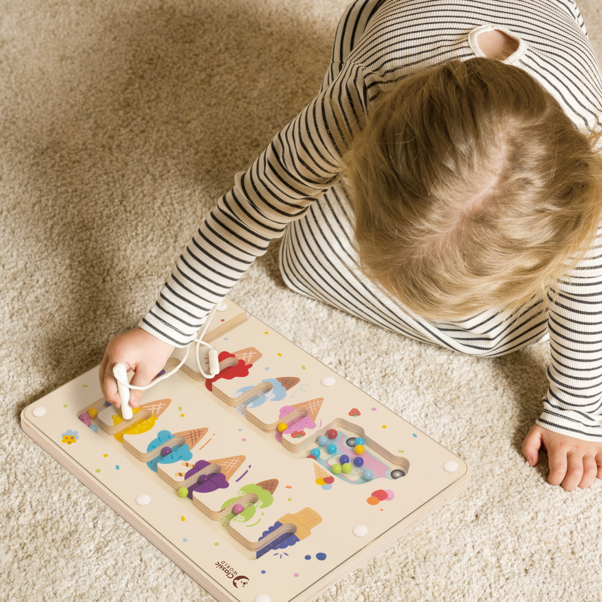 Αφήστε το παιδί σας να δημιουργήσει το δικό του εργαστήριο παγωτού! Με το μαγνητικό στυλό, μπορεί να τοποθετεί μπάλες παγωτού σε διάφορα χρώματα στα αντίστοιχα χωνάκια. Ένα υπέροχο παιχνίδι που: