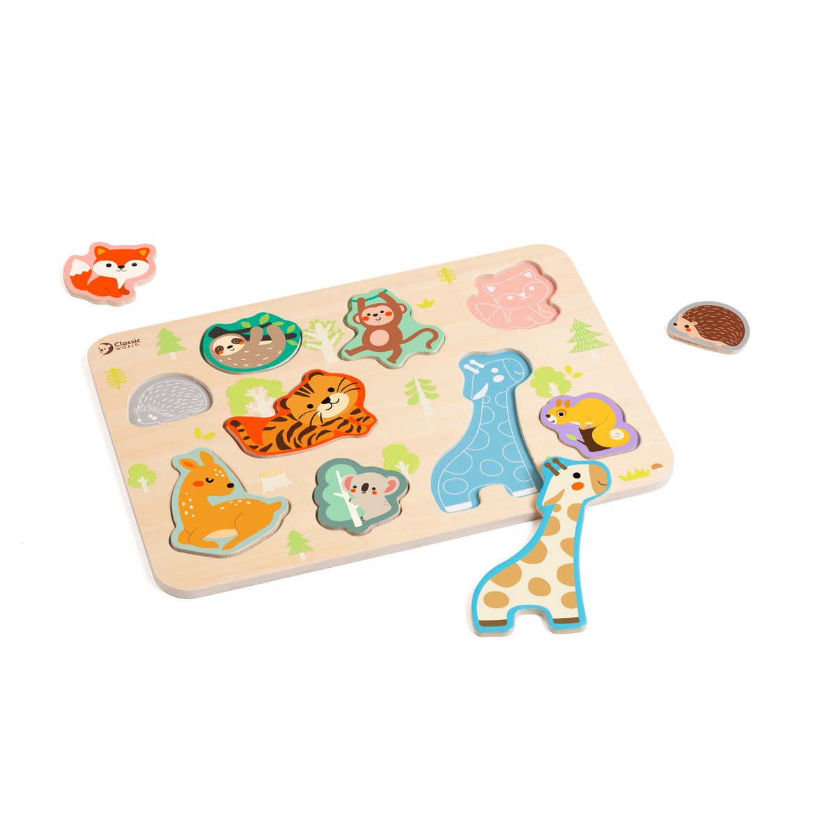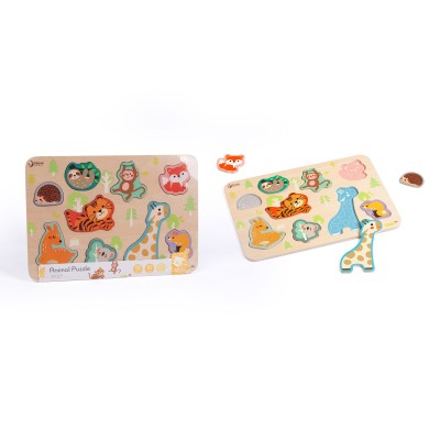 Ένα υπέροχο ξύλινο παζλ σφηνώματα με ζωάκια του δάσους, γεμάτο χαριτωμένες και διασκεδαστικές αλληλεπιδράσεις! Τα παιδιά μαθαίνουν να αναγνωρίζουν σχήματα και να ταιριάζουν σωστά τα κομμάτια, αναπτύσσοντας την παρατηρητικότητα και τον συντονισμό ματιού-χεριού. Ιδανικό για να μοιραστούν χαρούμενες στιγμές παρέα με τα ζωάκια του δάσους!