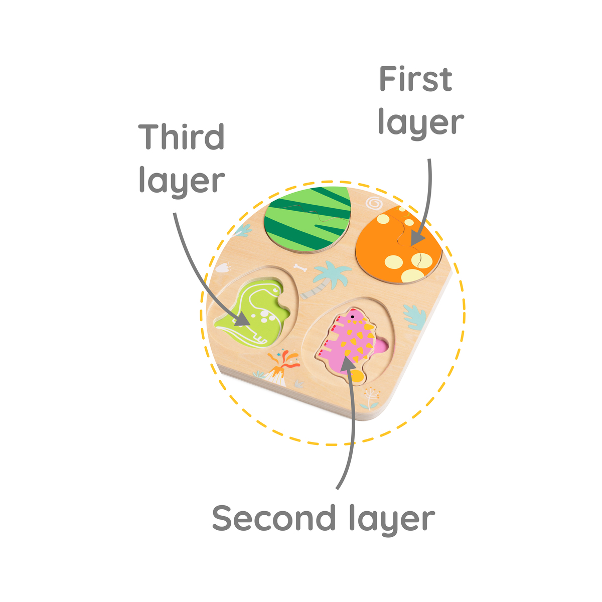 Αυτό το παζλ δεινοσαύρων είναι απίστευτα διασκεδαστικό! Διαθέτει τρισδιάστατο σχεδιασμό με τρία επίπεδα: