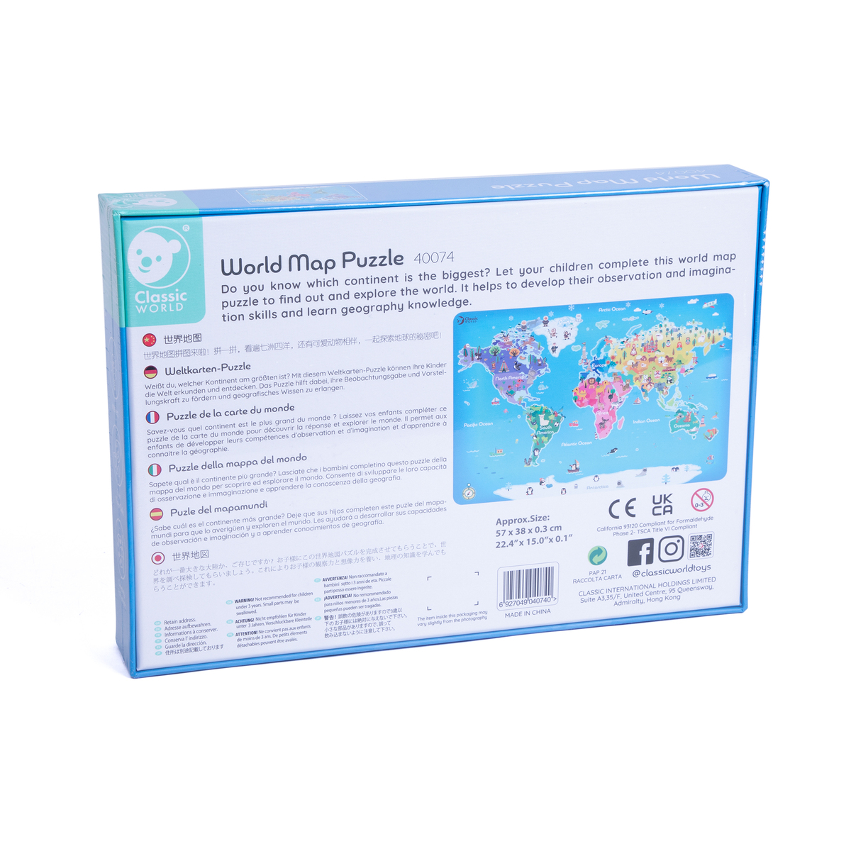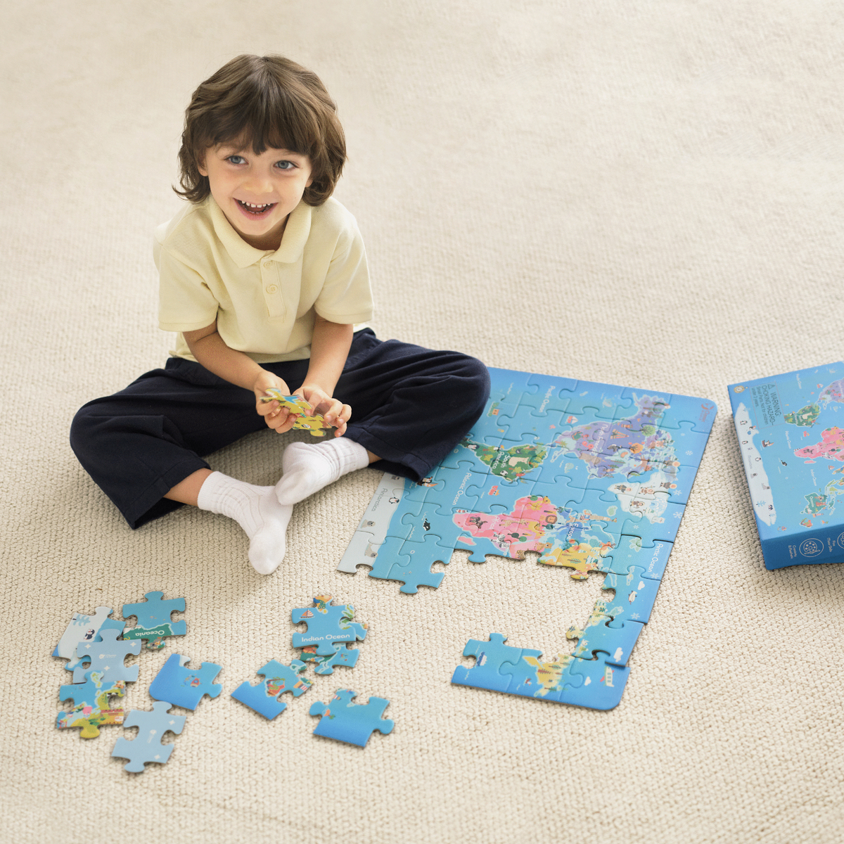 Ξέρεις ποια είναι η μεγαλύτερη ήπειρος; Άφησε τα παιδιά σου να ολοκληρώσουν αυτό το παζλ του παγκόσμιου χάρτη για να εξερευνήσουν κάθε γωνιά στον κόσμο! Το παιχνίδι αυτό βοηθά στην ανάπτυξη της παρατηρητικότητας, της φαντασίας και στην απόκτηση βασικών γεωγραφικών γνώσεων.