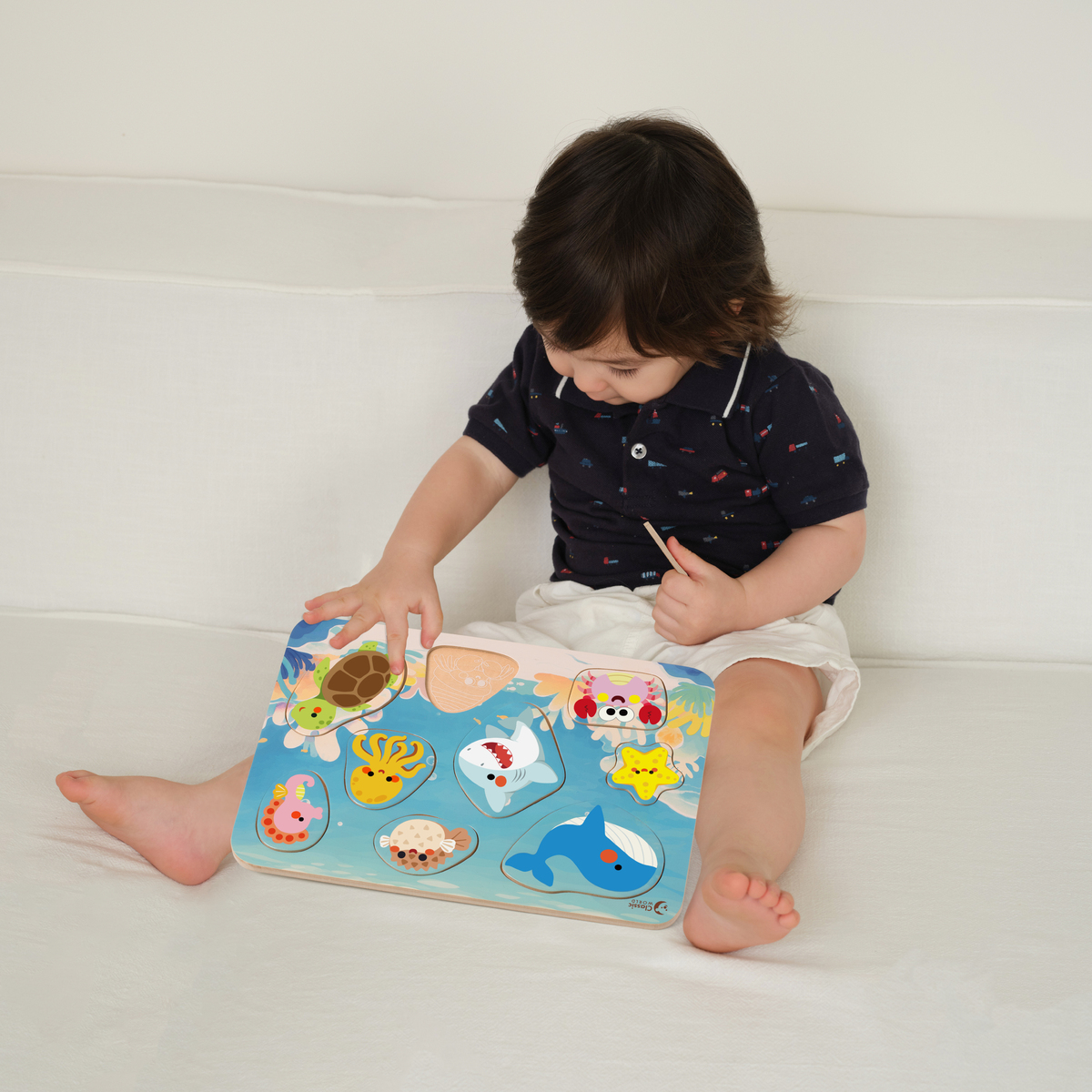 Το ξύλινο παζλ σφηνώματα με θέμα τον ωκεανό σε μεταφέρει σε έναν πολύχρωμο υποβρύχιο κόσμο, όπου μπορείς να εξερευνήσεις, να παίξεις και να μάθεις! Άφησε τη φαντασία σου να ταξιδέψει και έλα να ζήσεις αυτή τη συναρπαστική περιπέτεια στον ωκεανό!