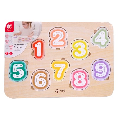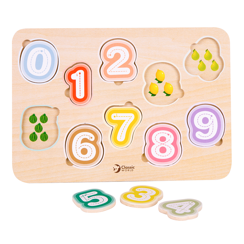 Εκπαιδευτικό και διασκεδαστικό, το χαριτωμένο αυτό ξύλινο παζλ βοηθά το παιδί σας να αναγνωρίζει τους αριθμούς και να μετράει. Τα φρουτάκια πάνω στα κομμάτια του παζλ ενθαρρύνουν την ανακάλυψη και την ανάπτυξη δεξιοτήτων επίλυσης προβλημάτων κάνοντας πιο ευχάριστο το παιχνίδι.