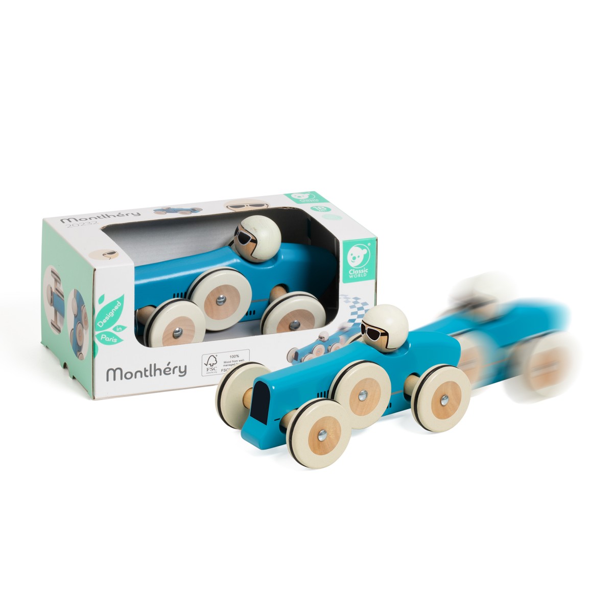 Αυτό το πανέμορφο αυτοκίνητο "Montlhéry" ανήκει στη συλλογή "Classic Racing", εμπνευσμένη από τα πιο διάσημα αυτοκίνητα στην ιστορία των αγώνων ταχύτητας! Χάρη στο σύστημα διεύθυνσης, τα παιδιά θα βιώσουν την απόλαυση της οδήγησης με διασκεδαστικό τρόπο. Οι μικροί οδηγοί θα αναπτύξουν τις λεπτές κινητικές τους δεξιότητες και τον οπτικοκινητικό συντονισμό. Το όχημα είναι χειροποίητο και φέρει την ένδειξη από ξύλο FSC, ενώ αποτελεί επίσης ένα εξαιρετικό συλλεκτικό κομμάτι για μεγαλύτερα παιδιά ή λάτρεις των κλασικών αυτοκινήτων.