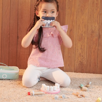 Ας γίνουμε οδοντίατροι και ας διασκεδάσουμε χάρη σε αυτό το ξύλινο σετ βαλιτσάκι οδοντιάτρου! Το σετ περιλαμβάνει 4 οδοντιατρικά εργαλεία, 2 κάρτες ακτινογραφίας, 8 δόντια σε θήκη, 2 επιπλέον δόντια και μια τσάντα για να αποθηκεύετε όλα τα αξεσουάρ. Παίζοντας, τα παιδιά βελτιώνουν τη φαντασία τους και την ικανότητα επίλυσης προβλημάτων, ενώ εξοικειώνονται και με τις επισκέψεις στον οδοντίατρο.