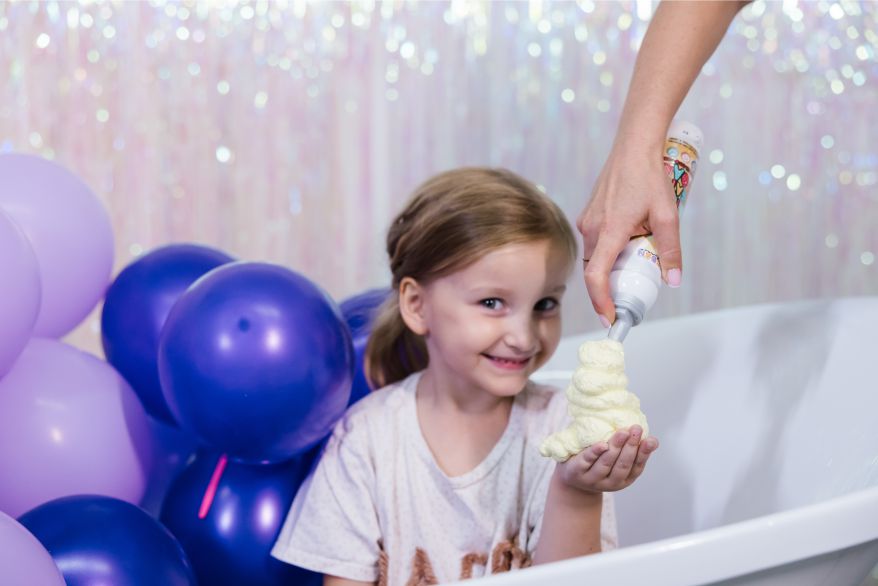 Η χρωματιστή και ευχάριστη στην αφή υφή του ενθαρρύνει για ένα τρελό και δημιουργικό μπάνιο!